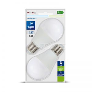 11Wx2vnt/pakuotėje LED lemputės V-TAC, A60, E27, termoplastikas, (6400K) šaltai balta