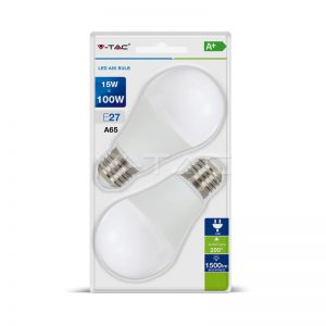 15Wx2vnt/pakuotėje LED lemputės V-TAC, A60, E27, termoplastikas, (6400K) šaltai balta