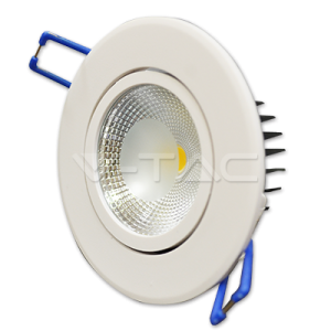 5W LED šviestuvas COB V-TAC, baltu korpusu, apvalus, (3000K) šiltai baltas