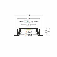 1m LED juostos profilio GROOVE14, neanoduotas aliuminis