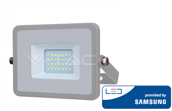 20W LED prožektorius V-TAC, 3000K (šiltai balta), pilku korpusu, SAMSUNG LED chip