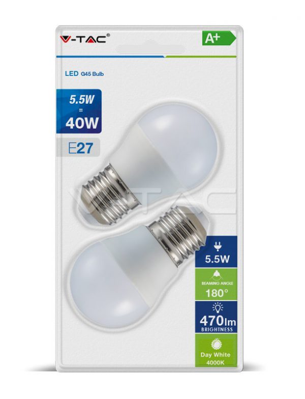 5.5Wx2vnt/pakuotėje LED lemputės V-TAC, E27, G45, 4000K(natūraliai balta)