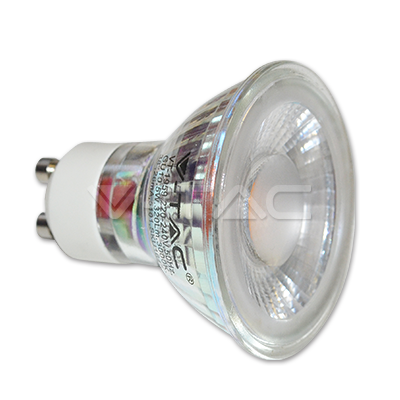 5W LED lemputė V-TAC GU10 su stikliniu dangteliu, su lęšiu (3000K) šiltai balta