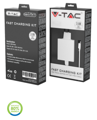 Išorinė baterija (power bank) V-TAC, baltas, 10000mAh. Išėjimai: 1xMicroUSB, 1xUSB TypeC