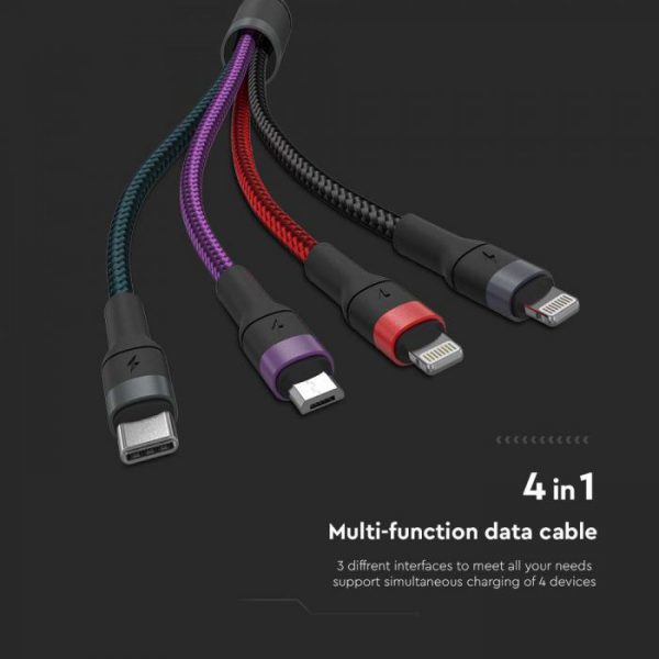 USB laidas, 4IN1, juodas, 1,2m